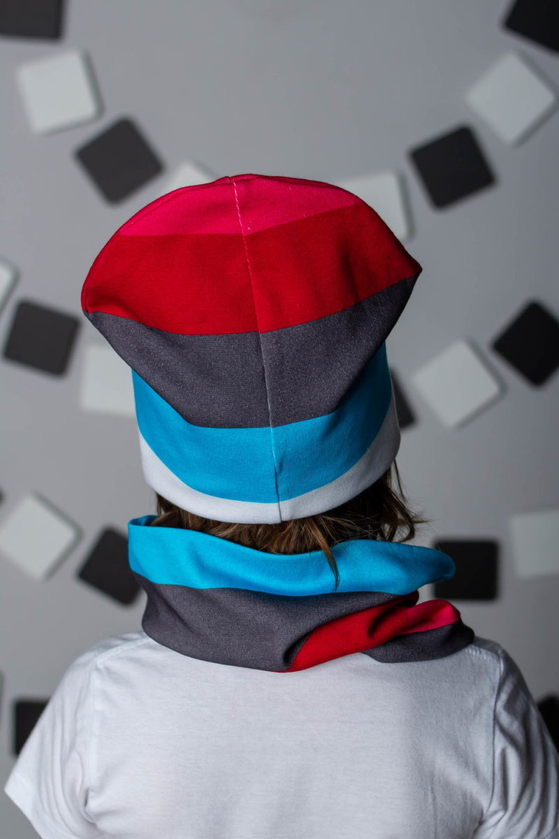 Комплект: шапка + шарф-снуд для мальчиков в насыщенной современной расцветке